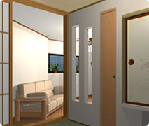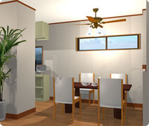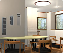 一般の方が、完成図の図面だけ見ても、全く想像がつきません。それはそのはず、基本的な建築の知識の有る専門家でなければ、完成予想は出来ません。図面の情報をもとに、ビジュアル化して、さらに家具や、装備も配置できるため、完成予想図は希望の形にする事が出来るのです。