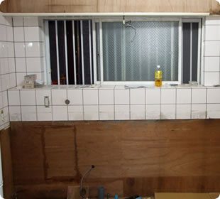 現場確認ができれば、その場で、見積もりは可能です。既存のキッチンをはがした後に残る、背面に使われているタイルの面積を計算して、タイルの切れ目がキッチンのふちから見えないようにサイズに関しては、何度もチェックをして、プランに十分に注意を払い、製品選択をし、無事問題なく施工させていただきました。また、製品が決まった時点で、弊社で常に携帯しているモバイルPCで即見積もり、施工日数など必要情報をお客様にご提供をいたしました。